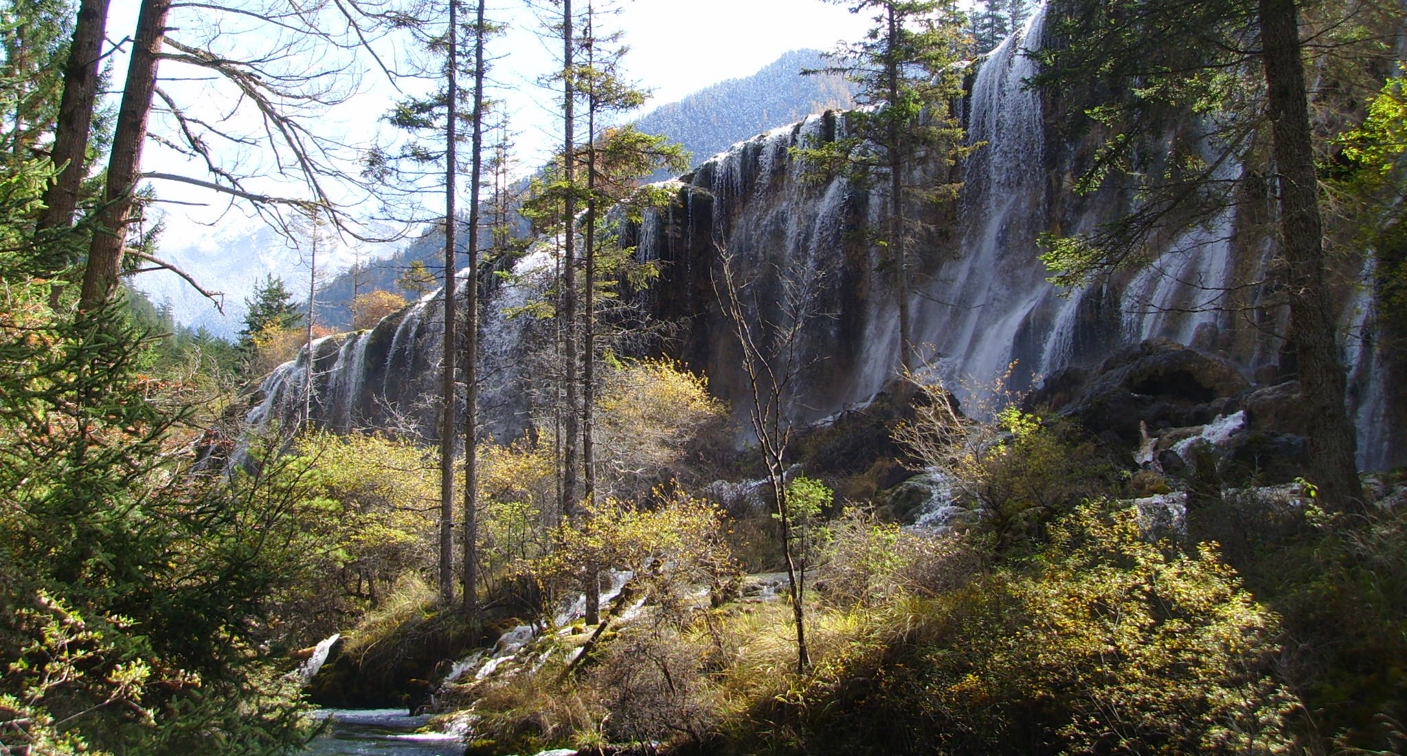 Jiuzhaigou is also not a single fall but a nature reserve and national park located in southwest China. Literally translated as “Nine settlement Valley” it is on the edge of the Tibetan Plateau and stretches over 72,000 hectares (180,000 acres). It is known for its many multi-level waterfalls, colorful lakes, and snow-capped peaks. Its elevation ranges from 2,000 to 4,500 metres (6,600 to 14,800 ft). I visited the region in mid-Autumn. The 10,000 ft altitude, the cool temperature and the fresh dusting of snow sure helped to accentuate the tranquility and serenity of this beautiful valley.