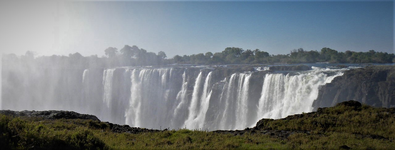 Vicky Falls is also located between two countries, Zimbabwe and Zambia. At over 108 meters (355 ft) high and 1.7 km (1.06 miles) wide, it forms the world’s largest sheet of tumbling down water. There are a number of pools on the edge of the upper fall where daring people can hike out to and take a dip overlooking the drop with rushing water all around them. My highlight of the visit was a helicopter ride which not only afforded a majestic vista of the Fall but also the aerial view of trotting zebras and giraffes in the nearby plains.